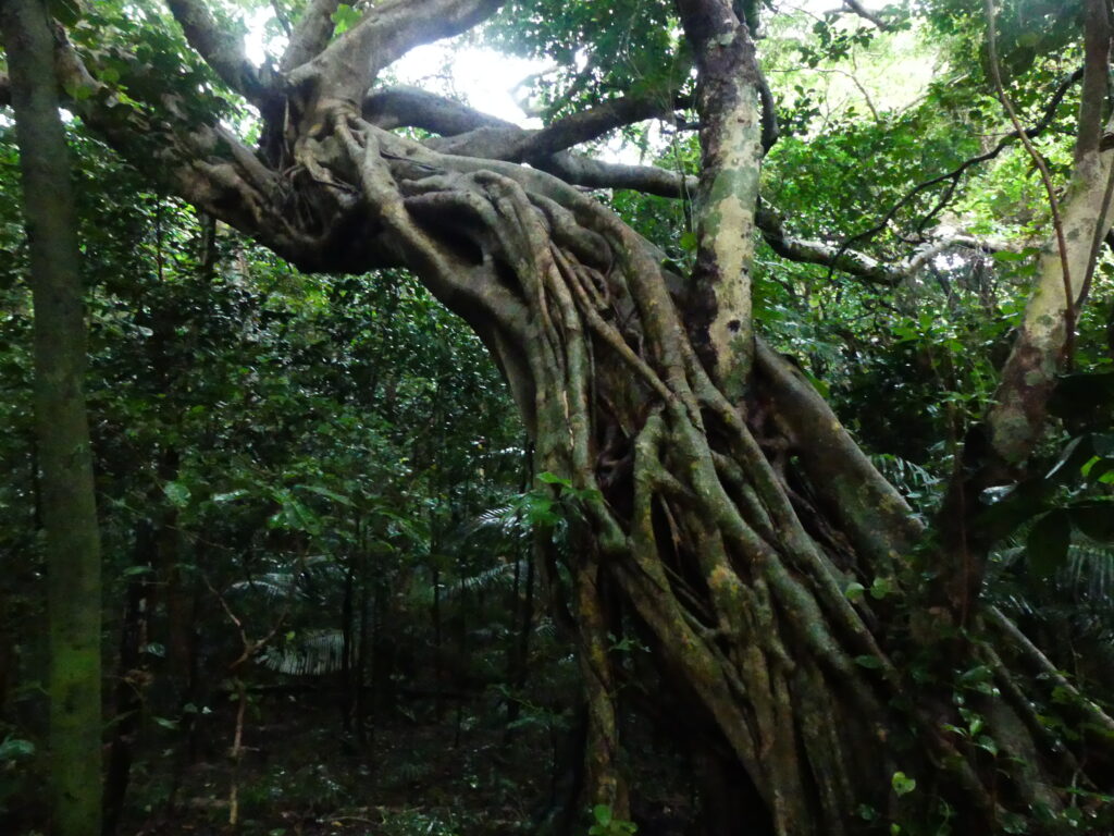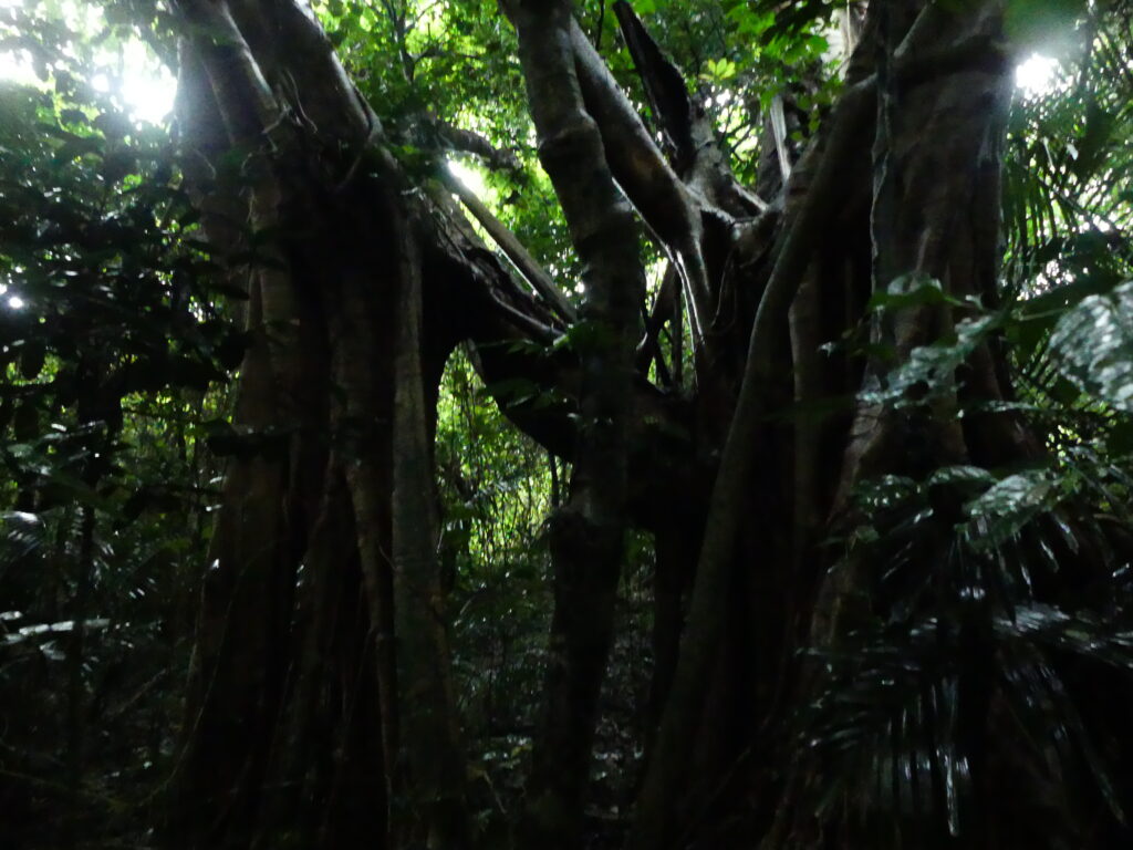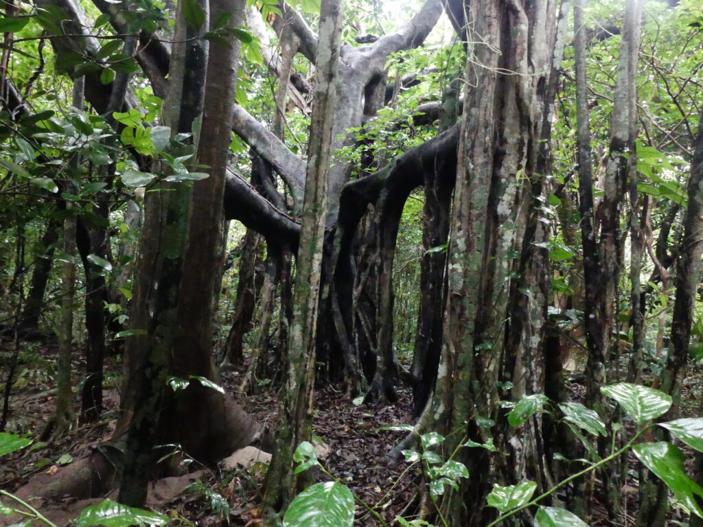 森の中にはガジュマルやハスノハギリなどの大木がいっぱい。